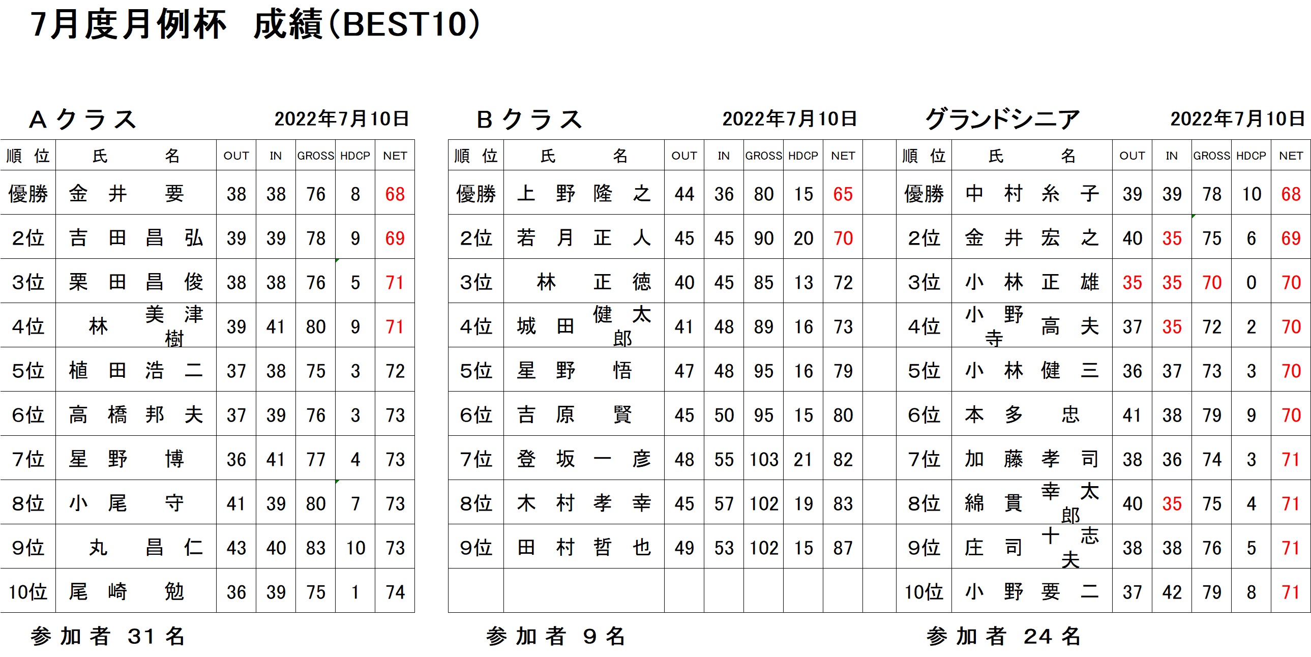7月月例杯ABGシニア
